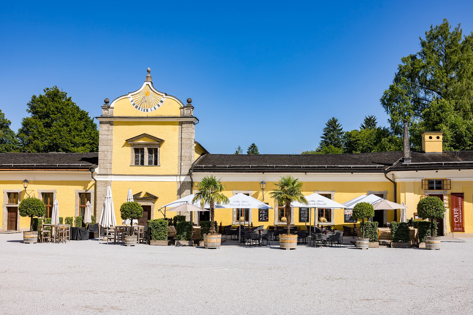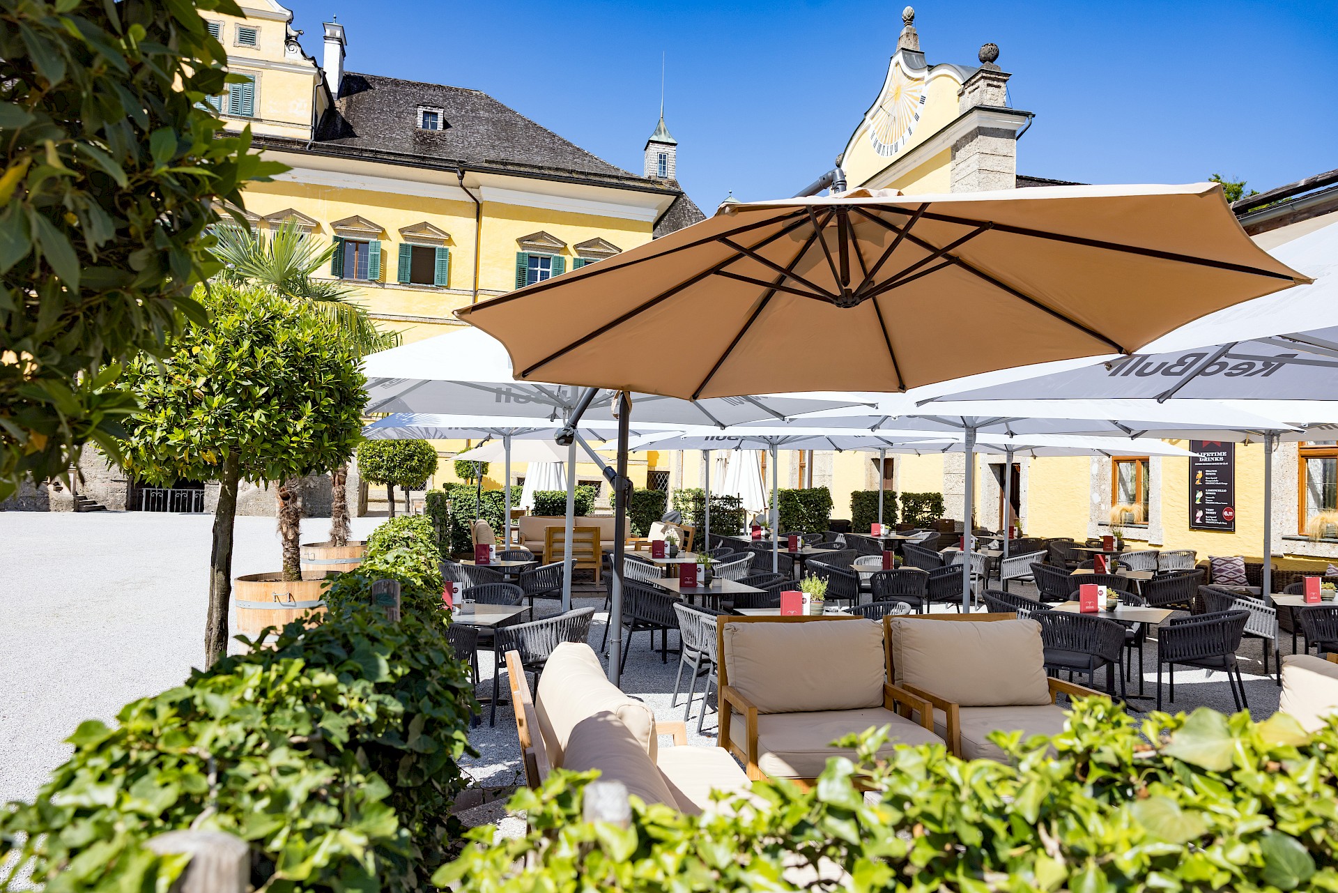 Mitten im historischen Schlosshof von Hellbrunn lädt der Gastgarten des Schlossrestaurants Hellbrunn zum entspannten Genießen ein. Umgeben von barocker Architektur und dem einzigartigen Flair der Schlossanlage erleben Sie hier kulinarische Momente in einer ganz besonderen Atmosphäre – stilvoll, aber ungezwungen.